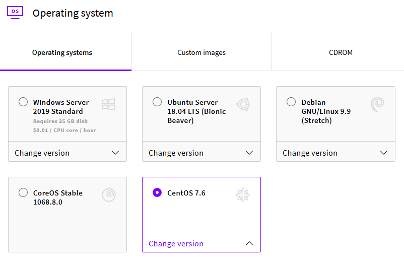 Choose an Operating System. If you don’t have Linux OS preferences select CentOS