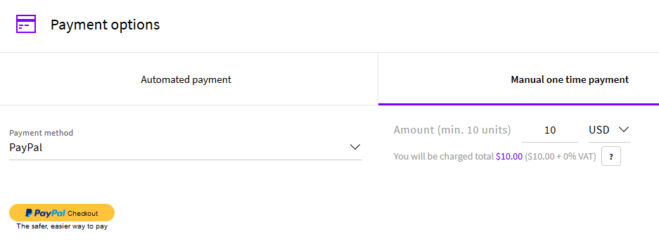 Make manual one time payment or setup automated payment. After $10 deposit your total balance will be $35 and that’s enough using $5 plan for 7 months.
