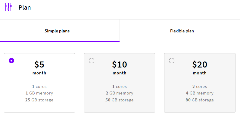 Select a plan. You’ve got everything starting from $5 USD a month for a
