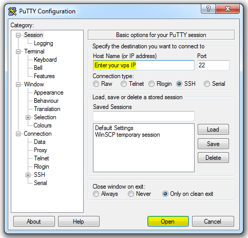 - Open your SSH client, in our case, we’ll use PuTTY.